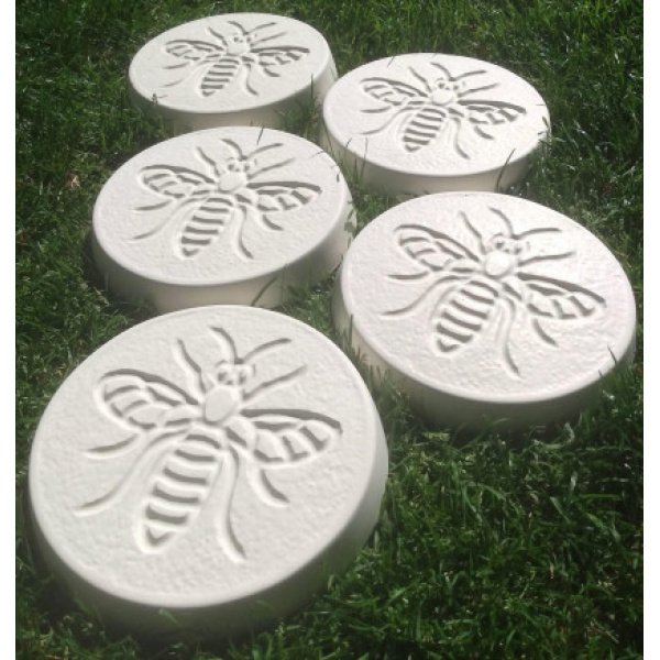 Concrete Bee Stepping Stones – White – (Pack of 5)